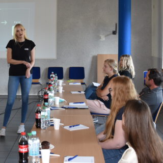Stephanie Kesting informiert die Innenstadt-Akteure, wie man über die Sozialen Medien mit seinen Kunden kommuniziert. Foto: Ingo Borowicz, IHK Arnsberg